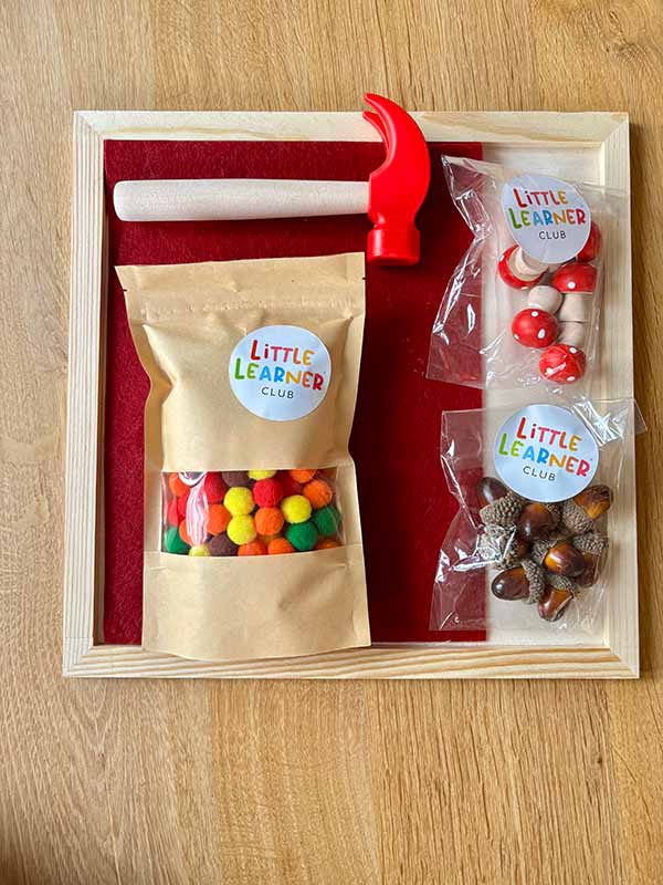 🌳 Natuurverbinding Kinderen ontdekken echte natuurmaterialen zoals eikenhoedjes, takjes en paddenstoelen. Een waardevolle kennismaking met de natuur, ook binnenshuis.