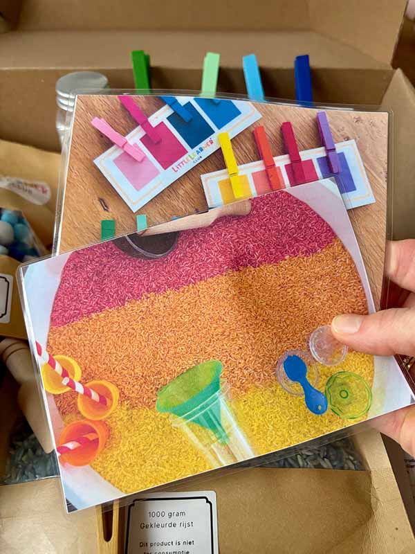 🎁 Compleet pakket met activiteitenkaarten Alles wat je nodig hebt in één doos! Inclusief inspirerende activiteitenkaarten vol spelideeën, zodat je direct aan de slag kunt. De verpakkingsdoos zelf is ook nog eens te gebruiken als extra sensorische bak – nul afval, maximaal speelplezier!