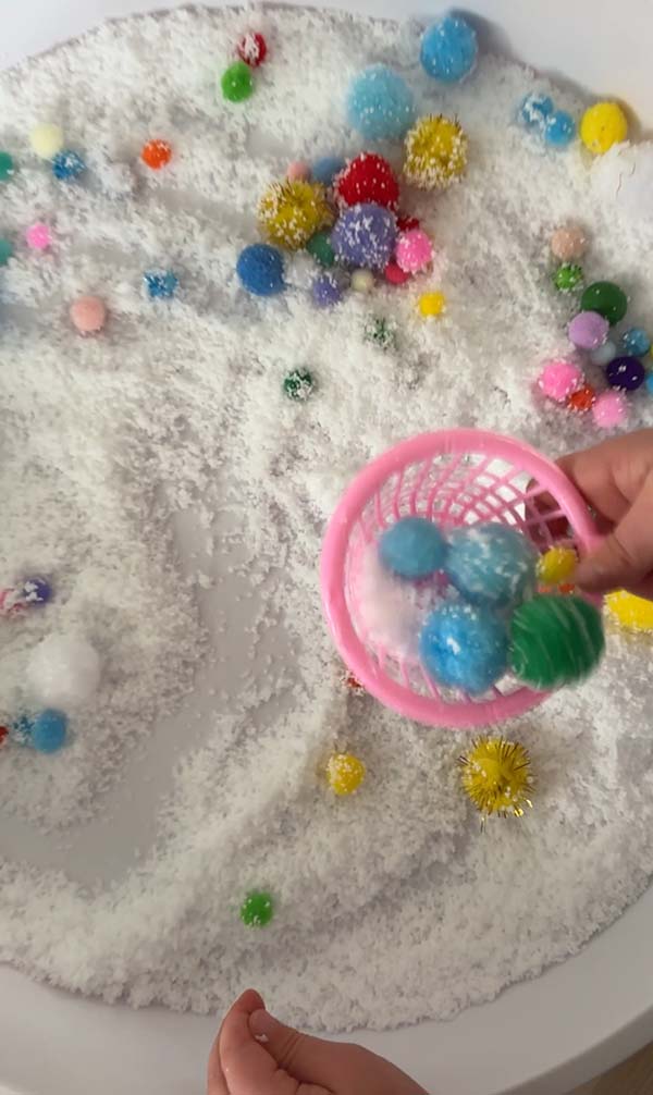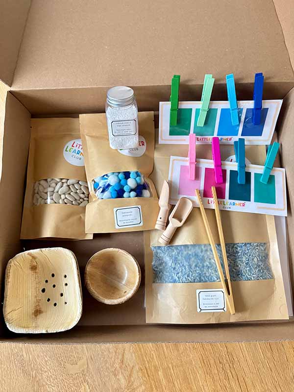 Je ontvangt alle materialen overzichtelijk verpakt, inclusief activiteitenkaarten vol spelideeën. Voeg alleen nog water toe aan de instant snow en het winterplezier kan beginnen! De verpakkingsdoos wordt je extra sensorische bak – duurzaam en handig.