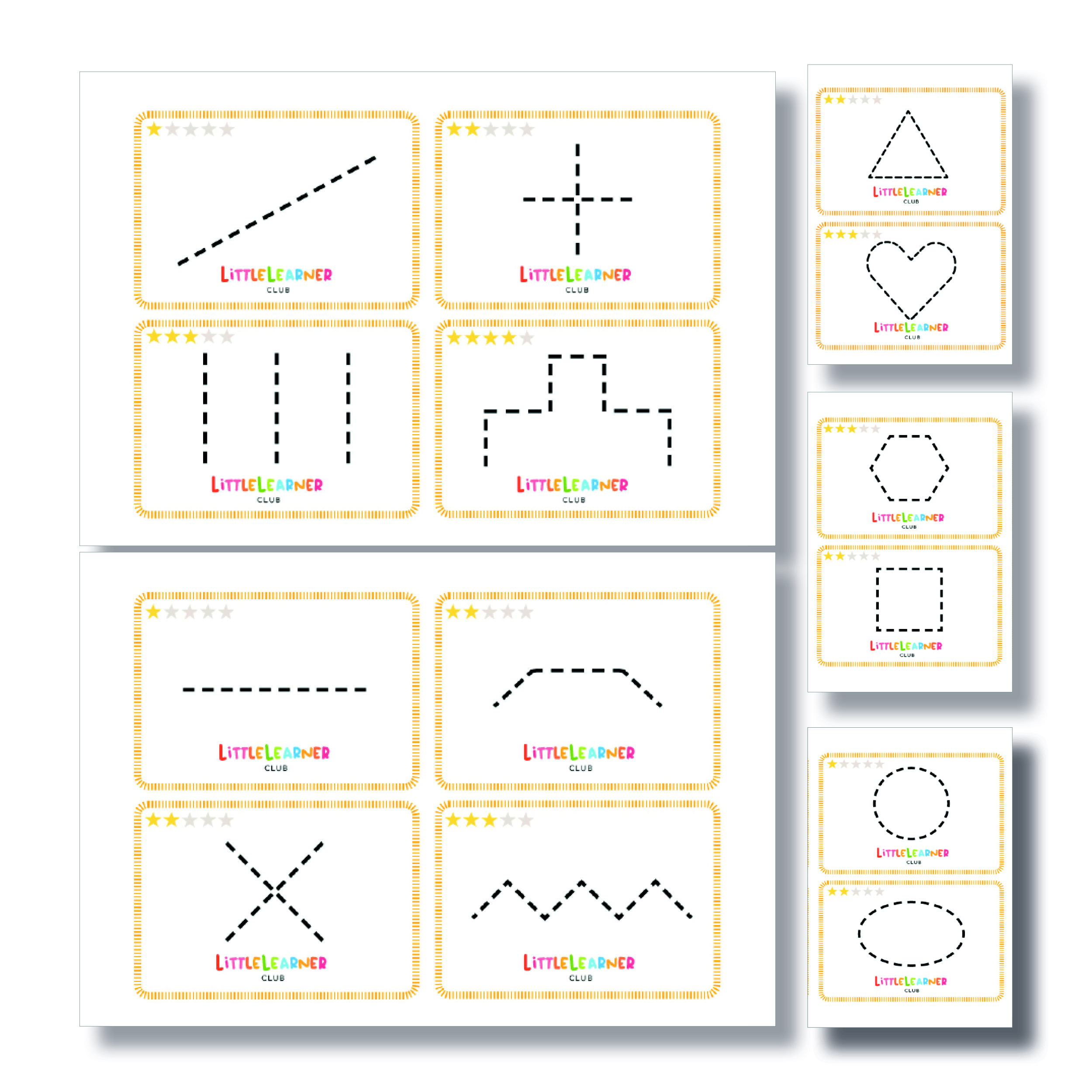 Help jouw peuter en kleuter op een boeiende en effectieve manier voor te bereiden op het leren schrijven. Deze set bestaat uit 14 kaarten, inclusief een duidelijke instructiekaart die je direct op weg helpt met motorische oefeningen.